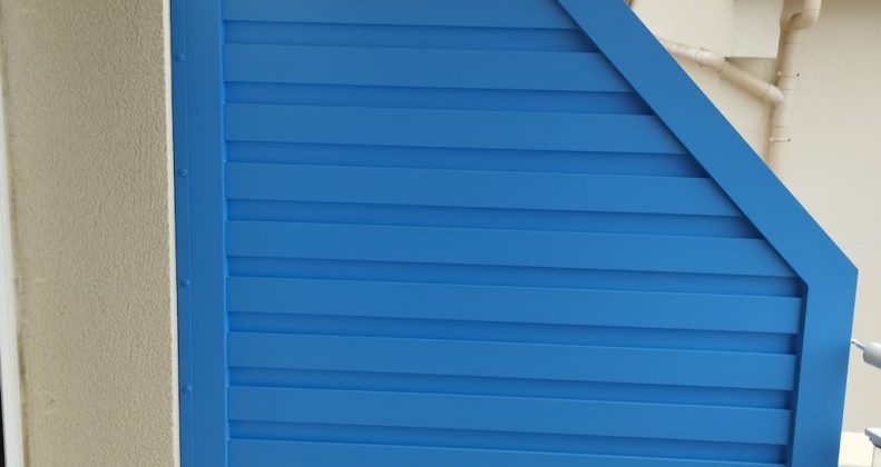 Fabrication d’un brise vue en aluminium en harmonie avec le garde-corps de la terrasse. Tôles découpées au laser.