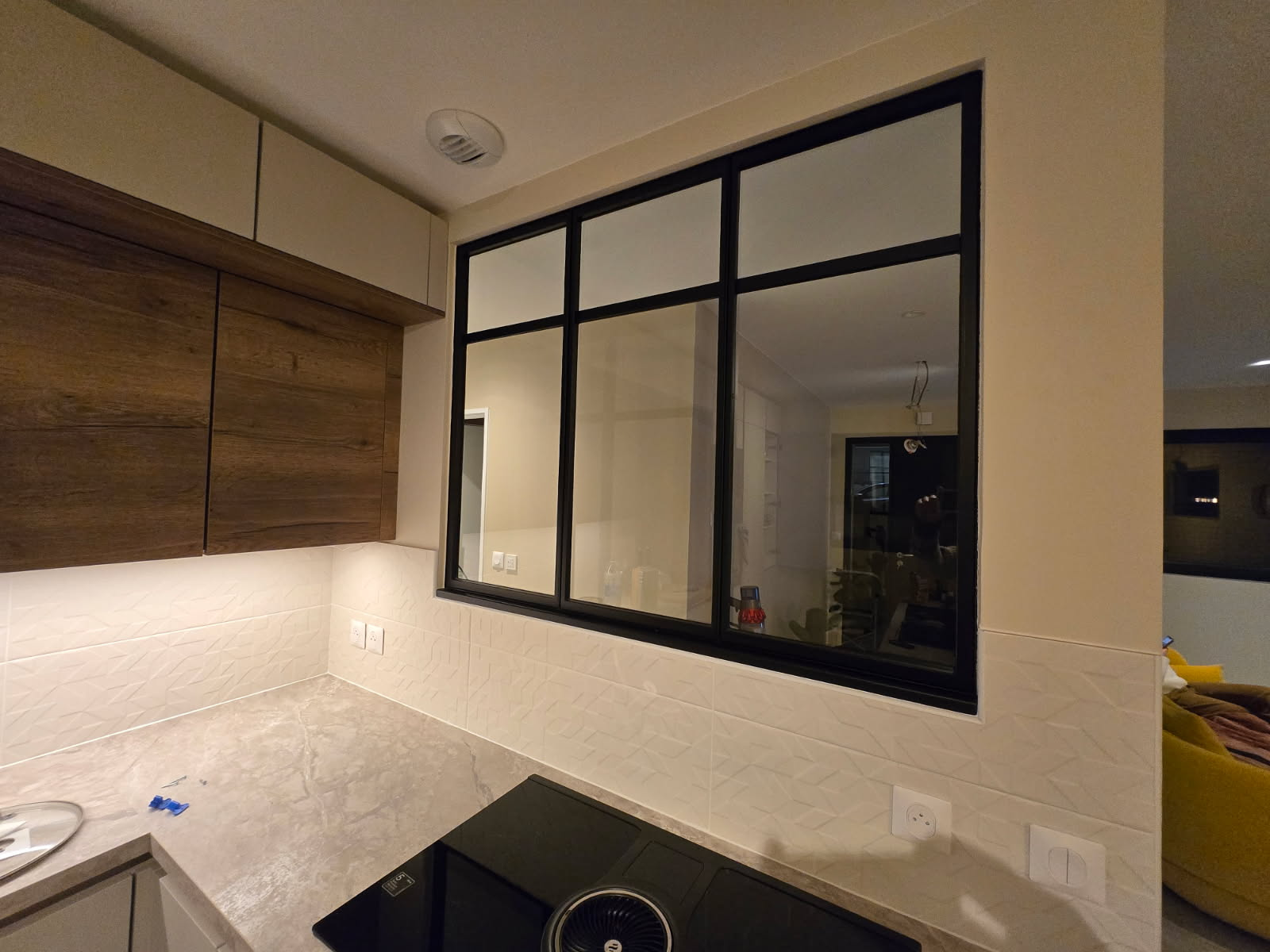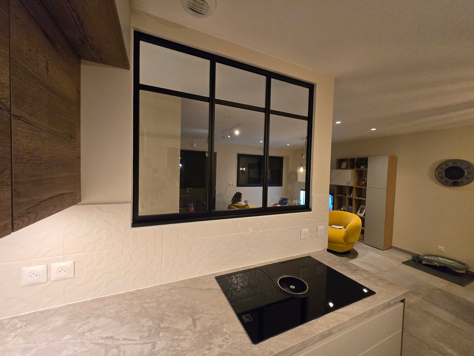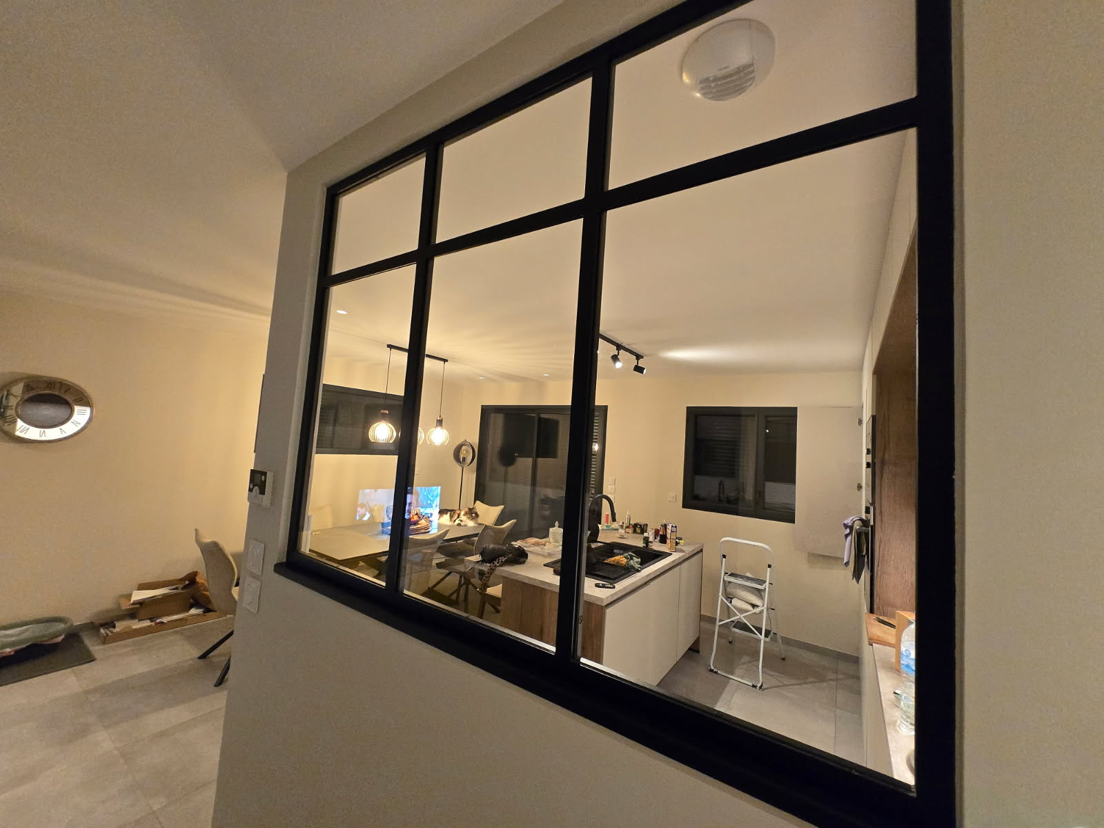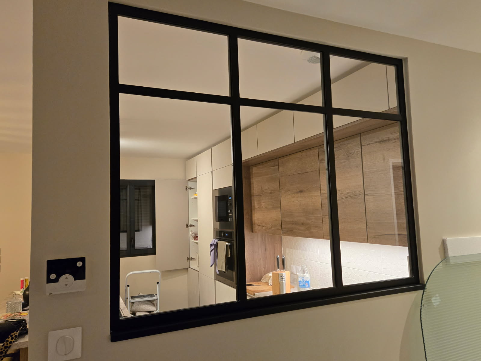 Verrière artisanale en acier avec parecloses en acier soudées.